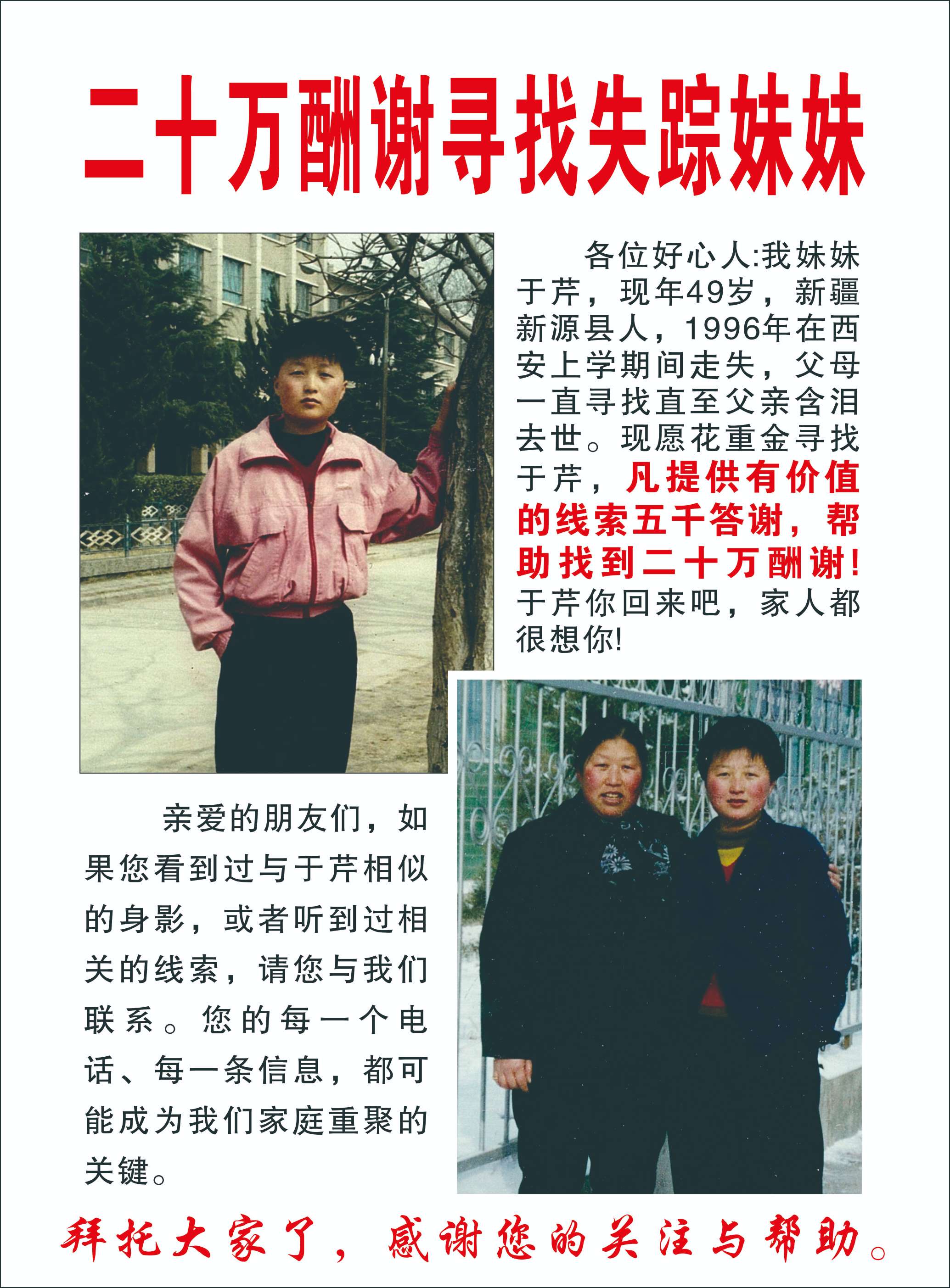 40岁 好心人请帮忙寻找走失二十年的姐姐,拜托?拜托